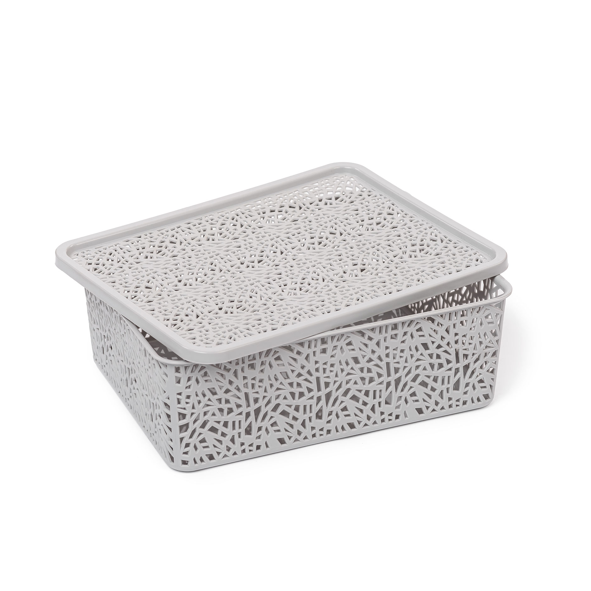 Корзинка с крышкой «ПАУТИНКА» №2 (29х22х10) серый