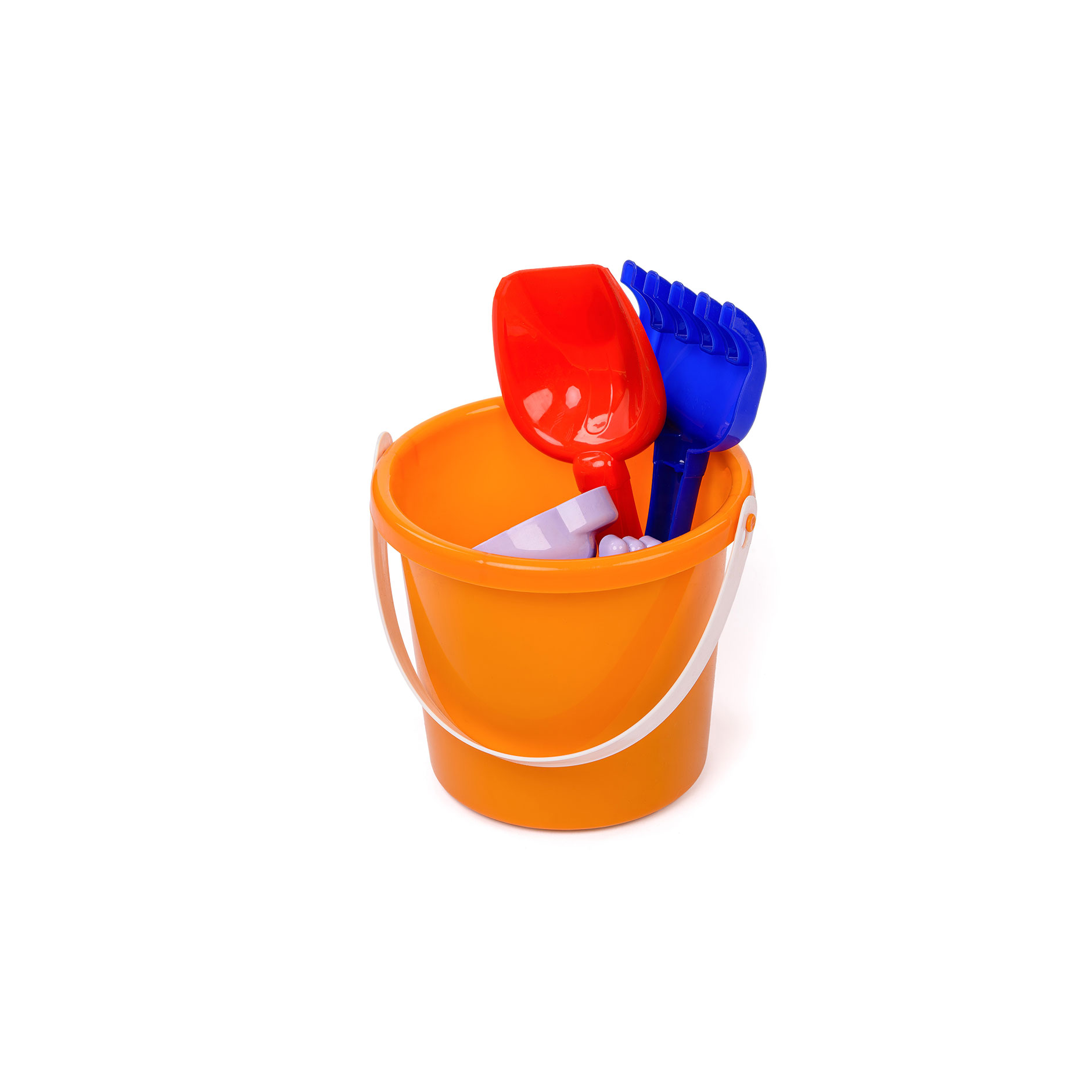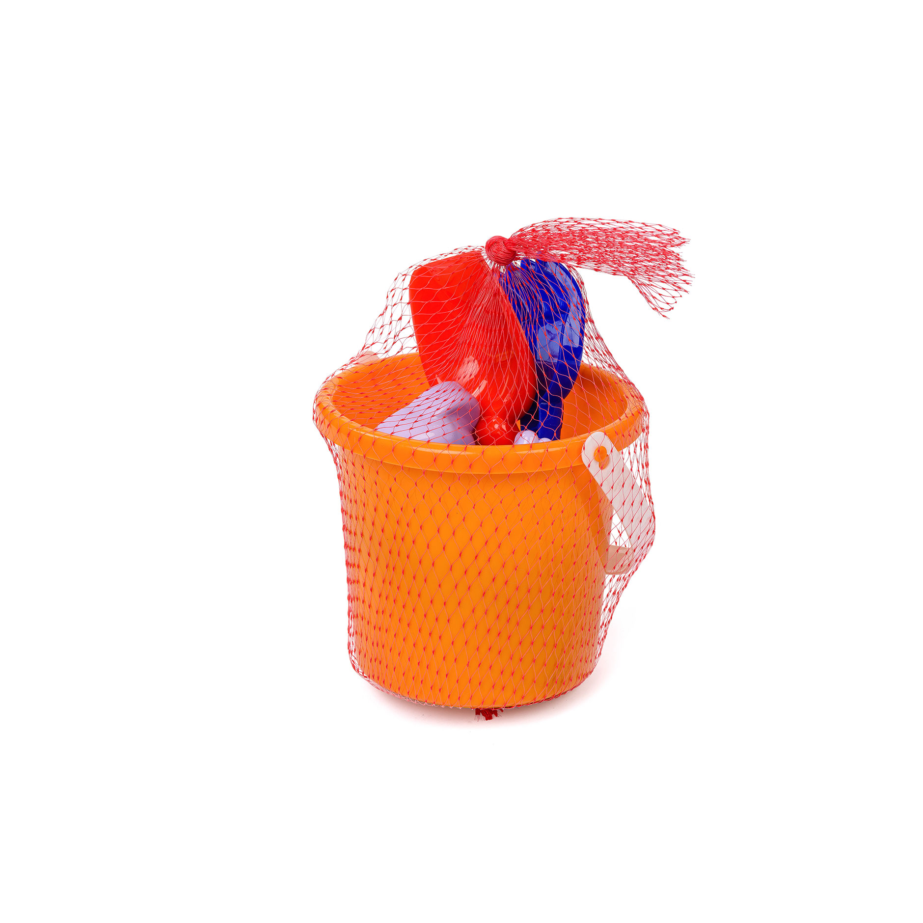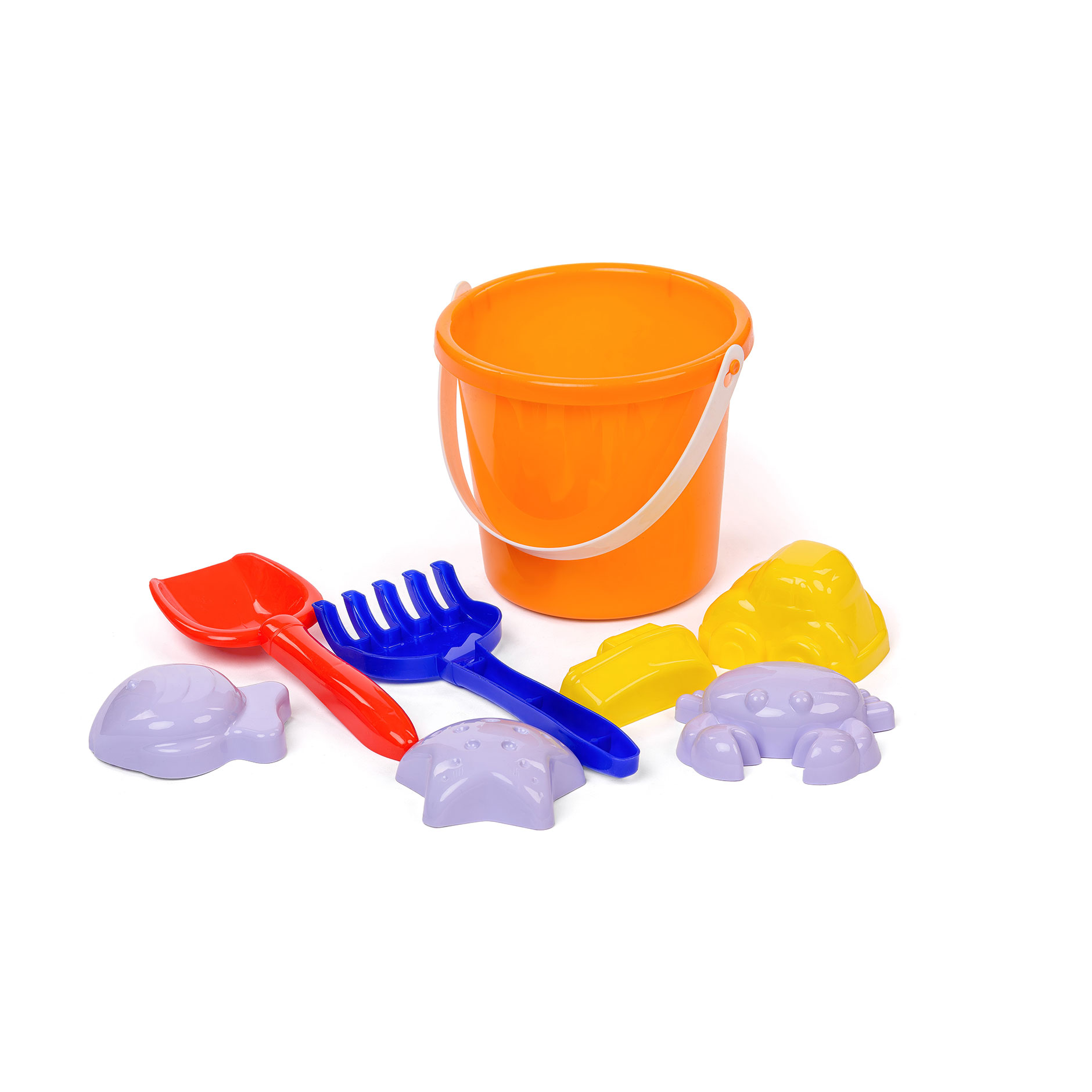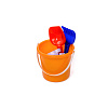9 предметов: ведерко, грабля, лопатка, 6 формочек. Материал: полипропилен.